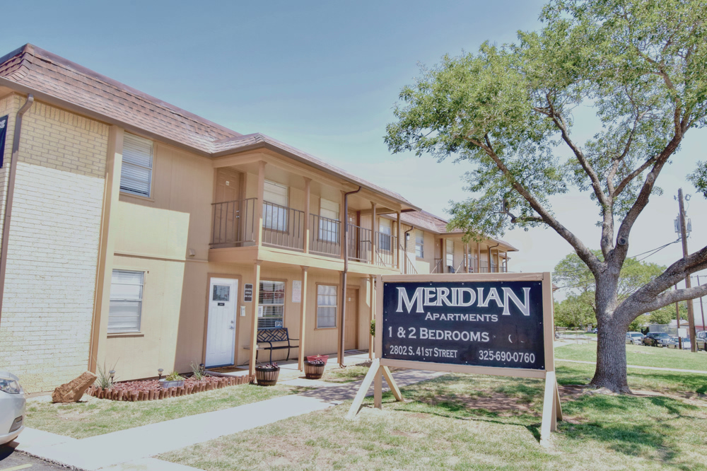 The Meridian Apartment Homes are located in Abilene, Texas. We offer unique one and two bedroom floor plans. We are a pet friendly community and basic cable, trash and water are paid.